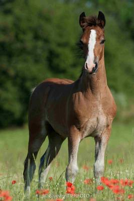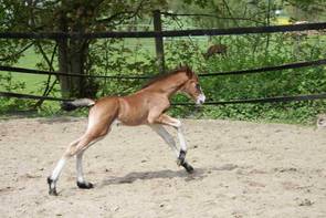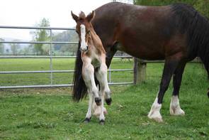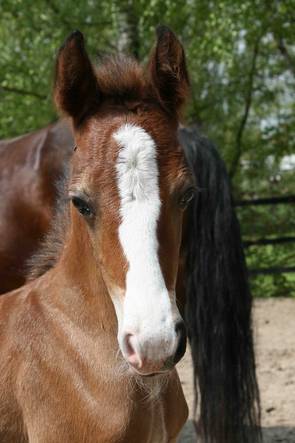 Nach einem (!) Jahr und zwei Tagen Trächtigkeit ist der kleine, putzmuntere Kerl auf die Welt gekommen. Noch nass und Eihaut auf dem Hintern wieherte er laut in die Welt hinein, um sich bemerkbar zu machen : )